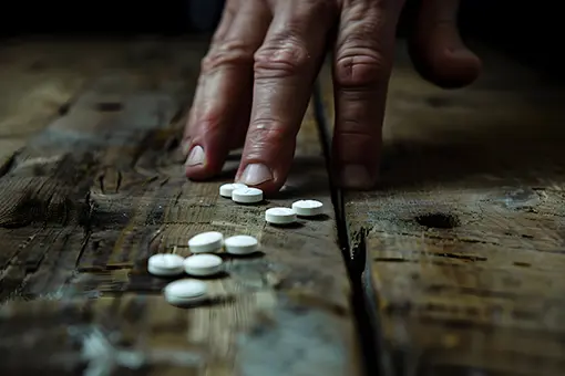 Hånd rækker ud efter oxycodon piller